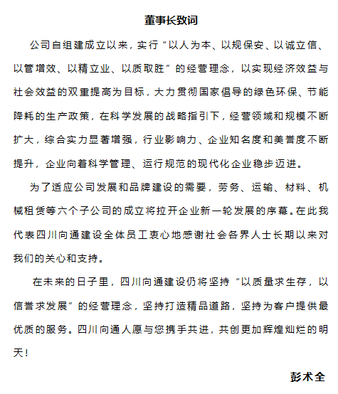 首 頁 > 關(guān)于向通 > 董事長致詞