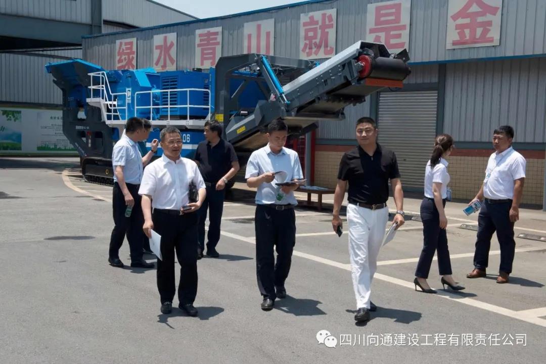 瀝青拌合樓、礦粉生產(chǎn)區(qū)、再生料生產(chǎn)區(qū)后,董事長彭術全先生為大家隆重介紹了公司自主研發(fā)生產(chǎn)機械--移動破碎機,